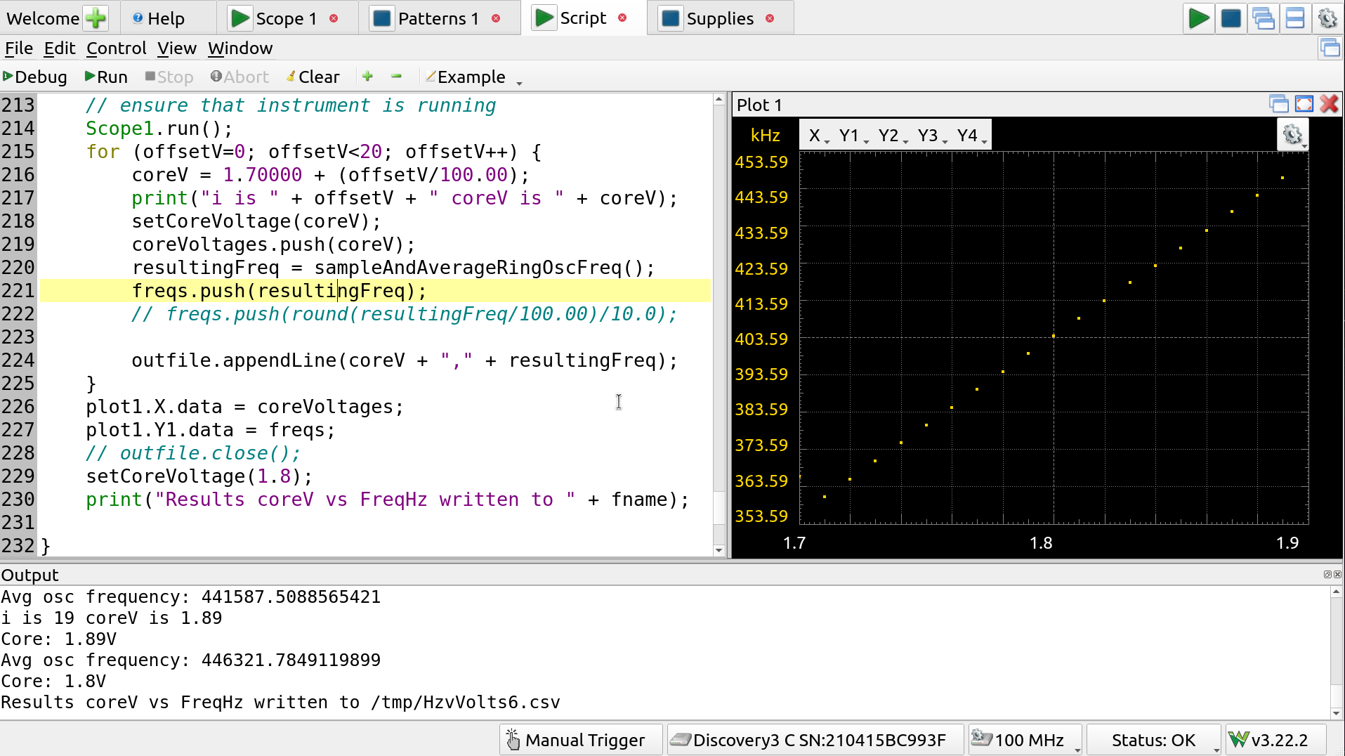 If you also want to run the oscillator frequency vs core voltage characterization, you’ll need to