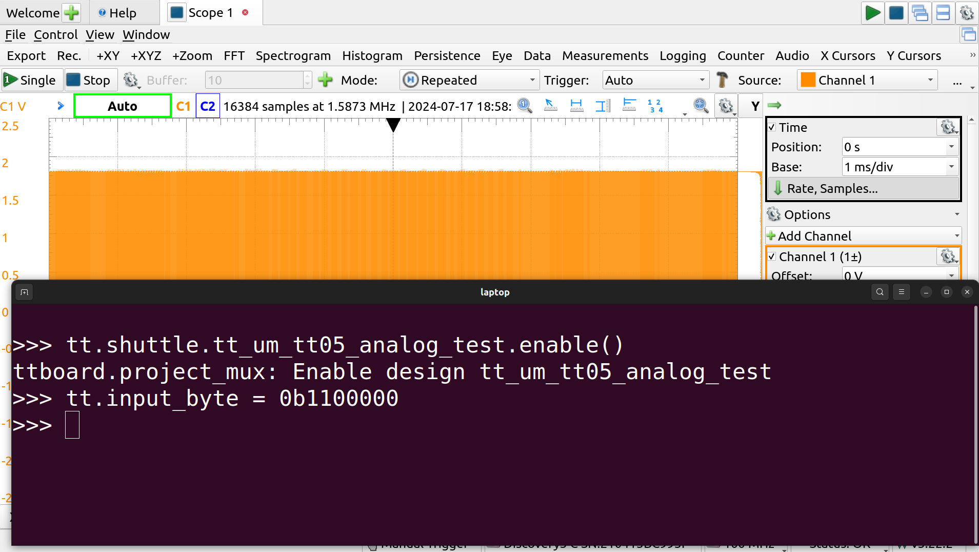 com.write("tt.mode = RPMode.ASIC_MANUAL_INPUTS\r\ntt.shuttle.tt_um_tt05_analog_test.enable()\r\n");