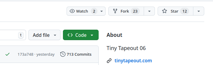 | Tiny Tapeout 6 | https://github.com/TinyTapeout/tinytapeout-06 |