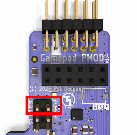 PRJ and SWIO pins together with a jumper.
