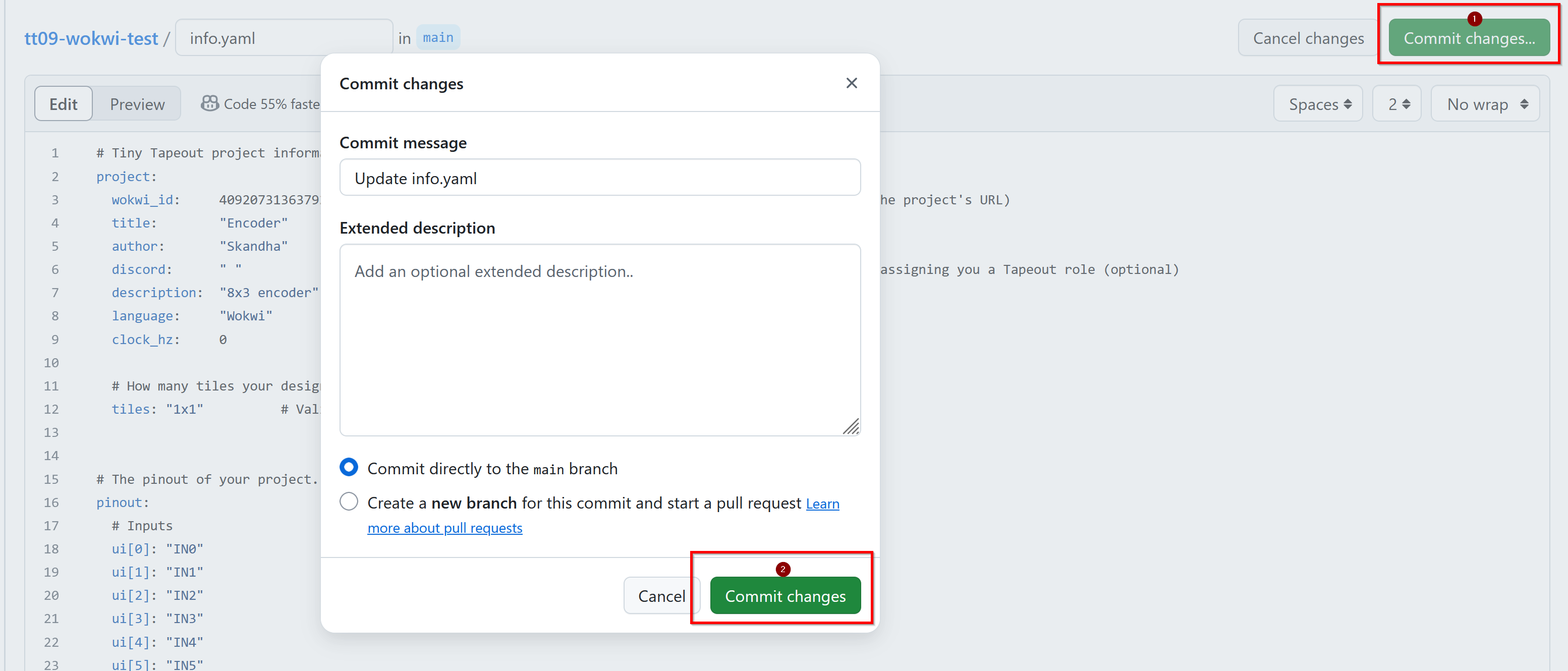 info.yaml file of your repository to match the ID from your Wokwi project.