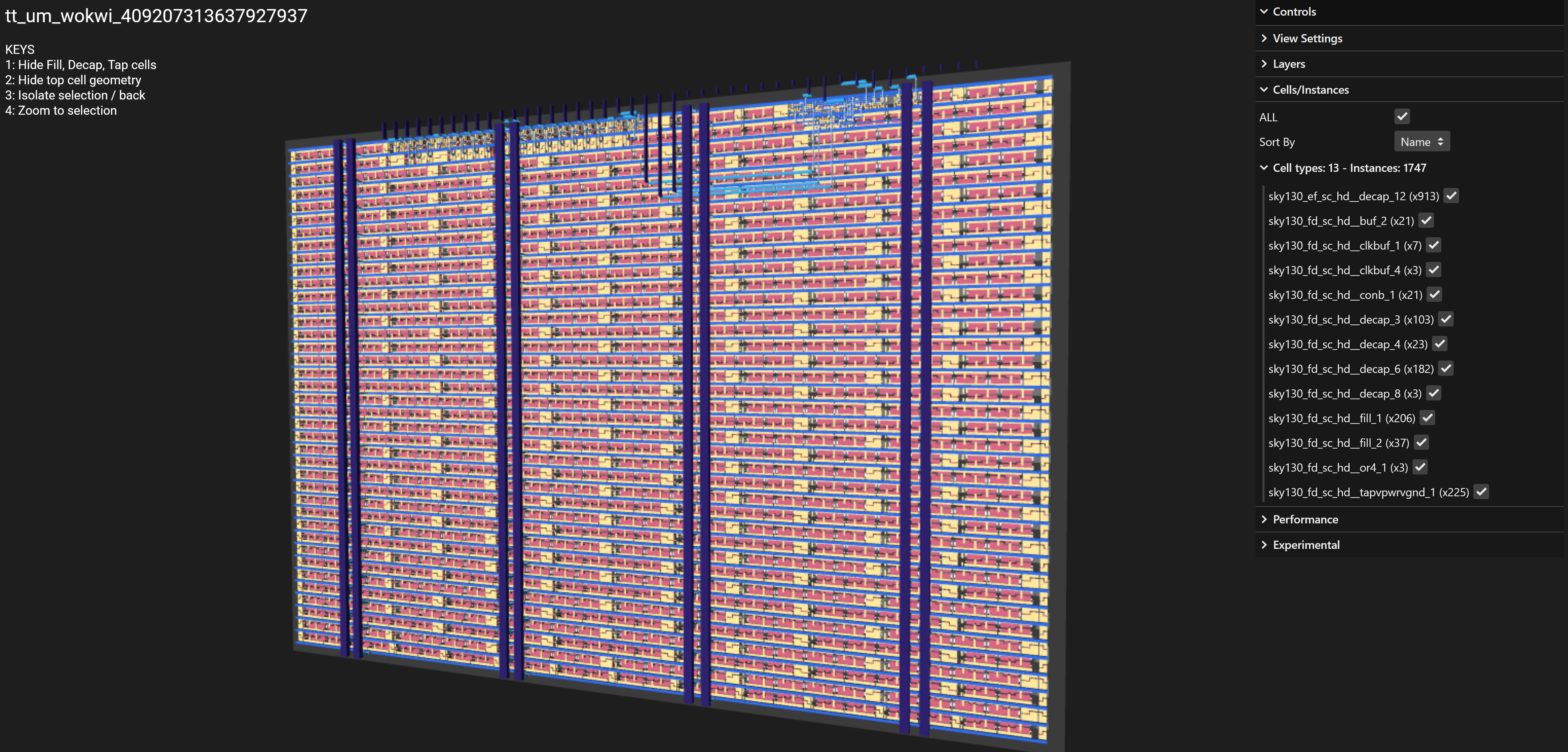 Can you match the logic gates you used in the Wokwi design with the standard cells in the physical layout?
