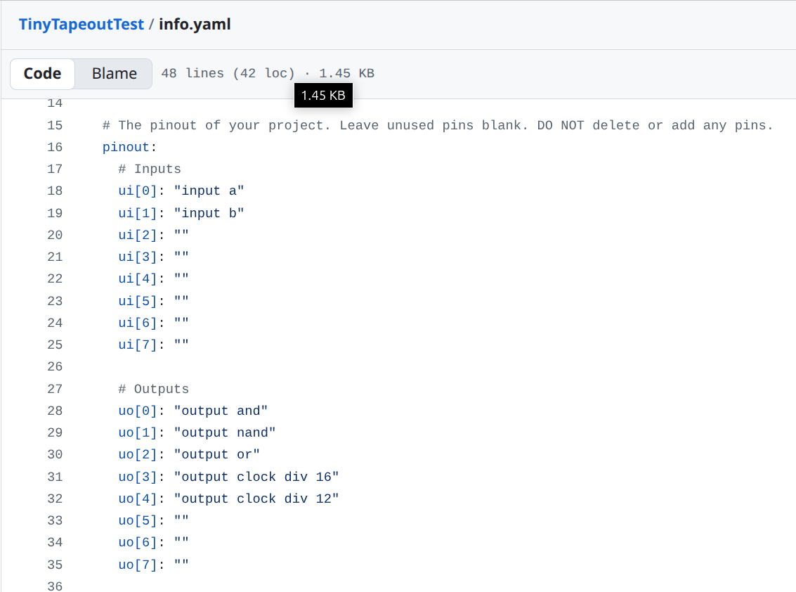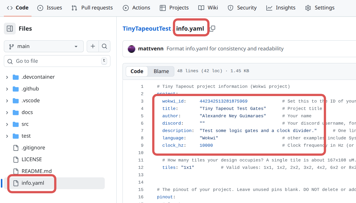 info.yaml FileThe info.yaml is used to tell us the important details of your project, which Wokwi project it is, who its by, what it does and how to test.