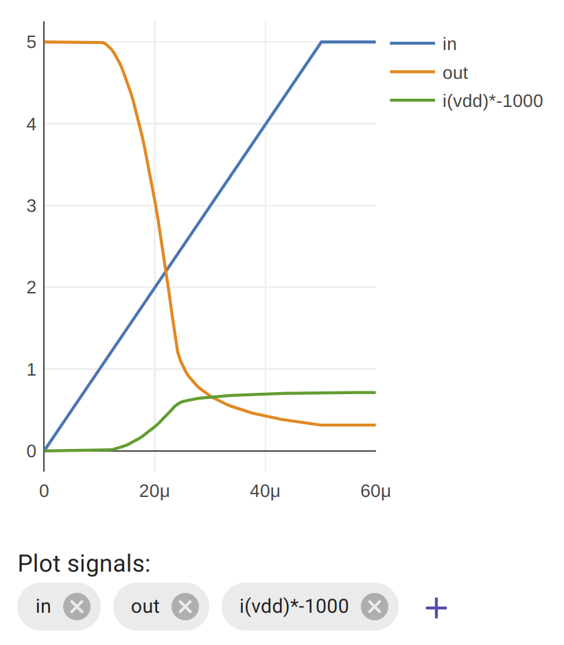 As before, add i(vdd)*-1000 to the list of signals to be plotted.